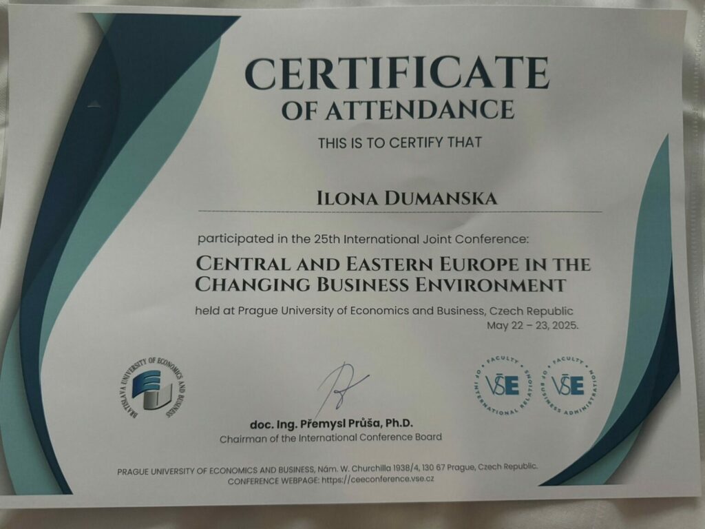 Участь професорки Ілони Думанської у 25-й Міжнародній спільній конференції “Central and Eastern Europe in the Changing Business Environment” відбулась в очному форматі у місті Прага, Чеська Республіка. Офіційна вебсторінка конференції: https://ceeconference.vse.cz/#.